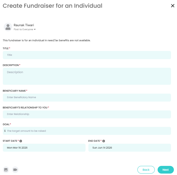 How to create Fundraiser for an Individual