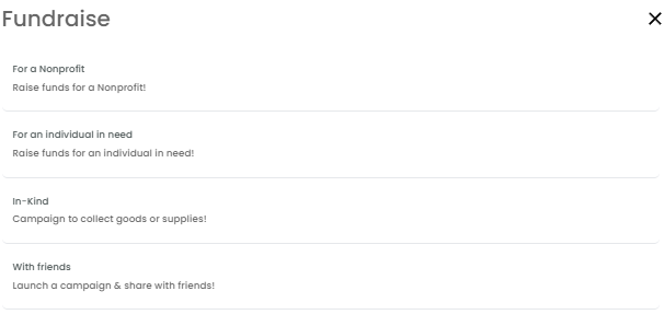 Note: You can create this fundraiser only if this feature is included in your subscription plan. If it's not currently part of your plan and you'd like to upgrade, feel free to reach out to our team at hello@neki.io.